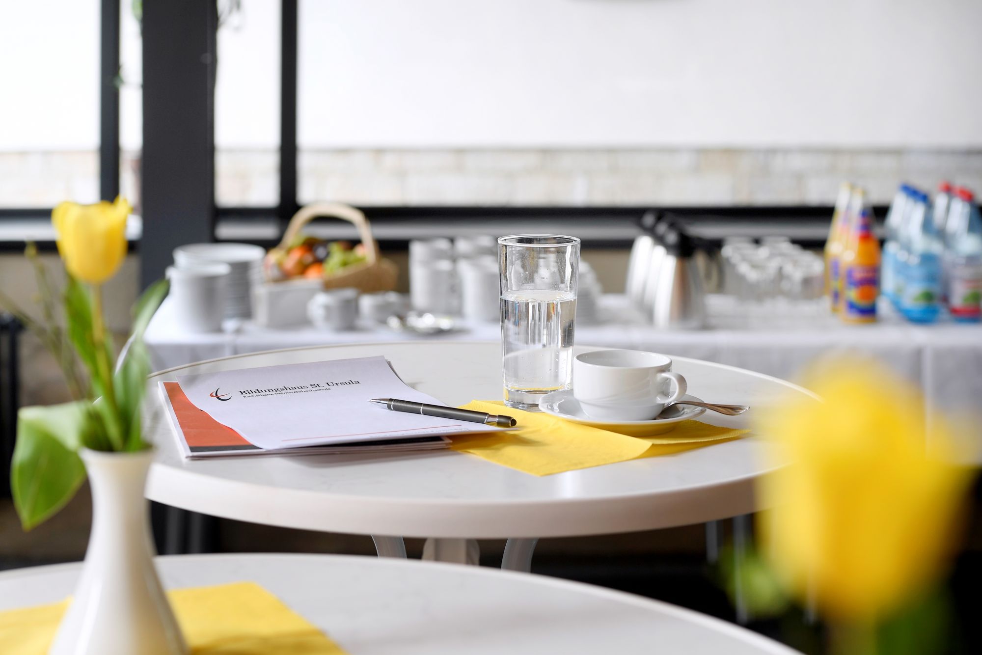 Neben vier modern ausgestatteten Tagungsräumen gibt es Cafeteriabereiche und Clubräume, die zu Begegnung einladen sowie eine Hauskapelle als Ort der Ruhe und des Gebetes.
